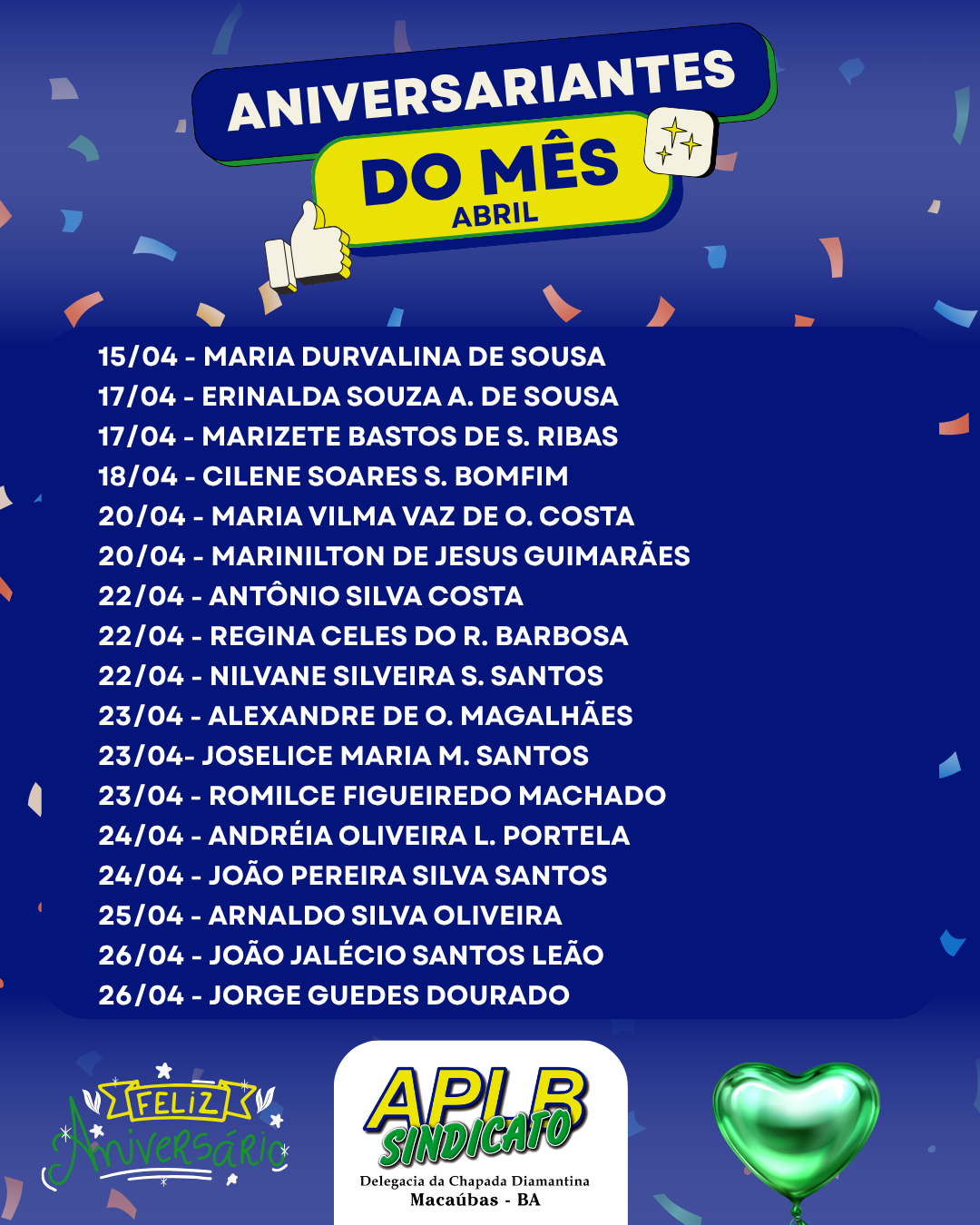 ANIVERSARIANTES DO MÊS!